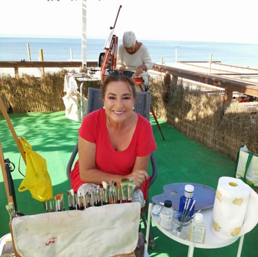 Nací en Huelva y estudié Enfermería, profesión que tanto me ha dado y que tanto me ha enseñado sobre el ser humano, sus emociones y sus sentimientos. Para mi, pintar es como meditar, y complementa mi esencia.