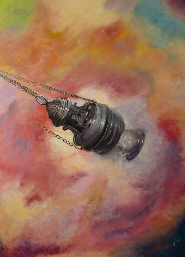 Cada obra expuesta y cada interacción con los asistentes están impregnadas de un sentido de propósito, donde el arte y la devoción se entrelazan.