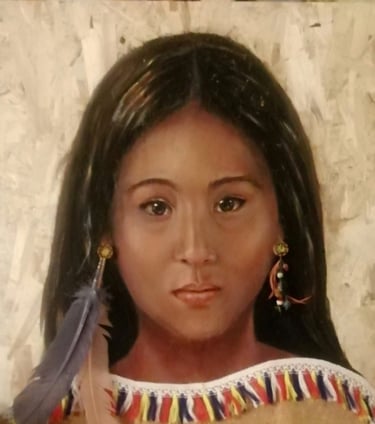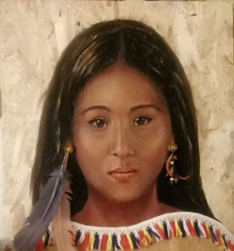 Nombre de la Obra: India Americana Tamaño en centímetros: 62x68 cm Breve descripción: técnica mixta, con materiales reciclados sobre tablero OSB